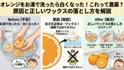 お菓子作り オレンジをお湯で洗ったら白くなった!これって農薬?原因と正しいワックスの落とし方を解説